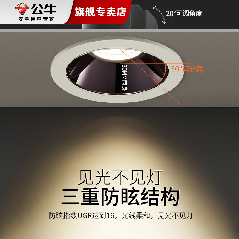 公牛led天花灯嵌入式射灯cob孔灯无主灯家用客厅吊顶防眩筒灯新款