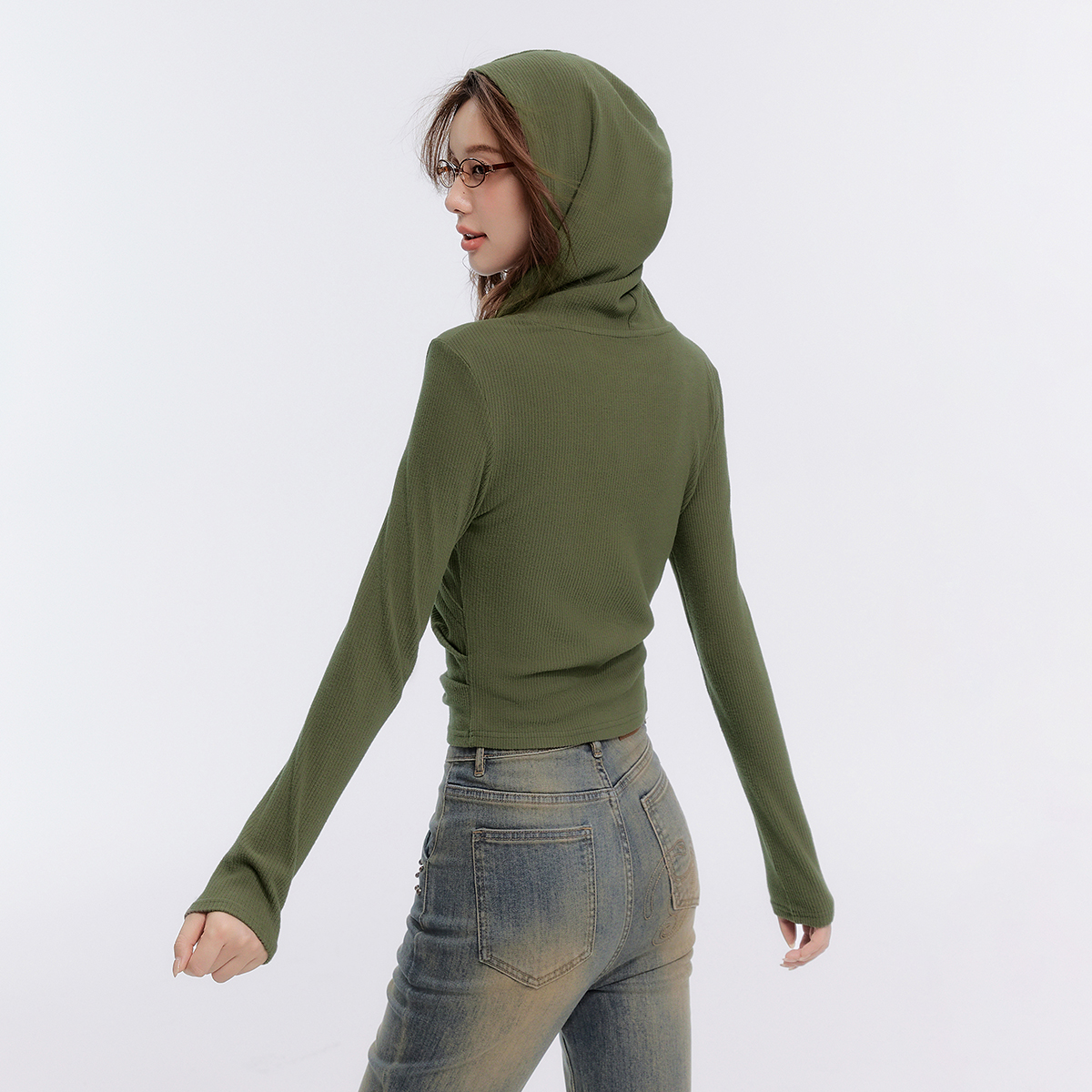 EPTISON连帽长袖T恤女2025秋季新款复古美式修身独特短款辣妹上衣