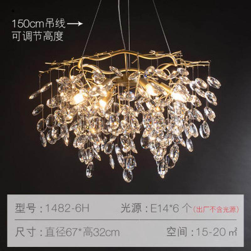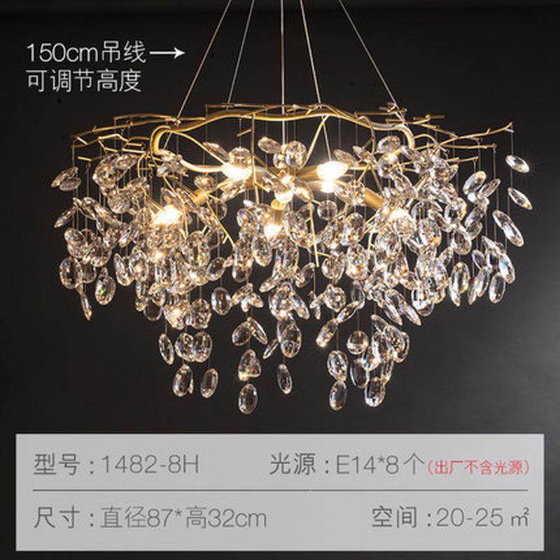 北欧卧室灯轻奢灯具客厅后现代简约别墅水晶全铜吊灯新款餐厅灯饰