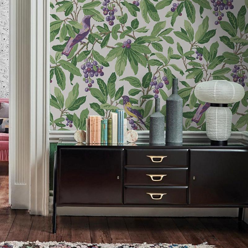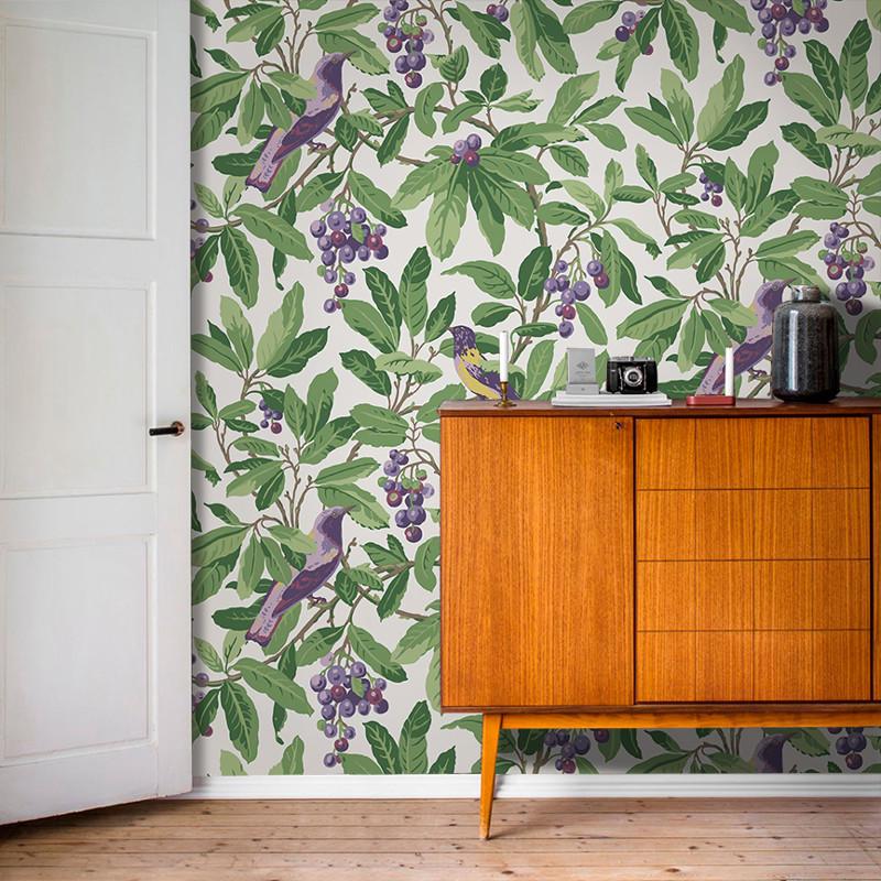 美式手绘花鸟壁纸北欧艺术花卉壁画客厅电视背景墙纸无缝自粘墙
