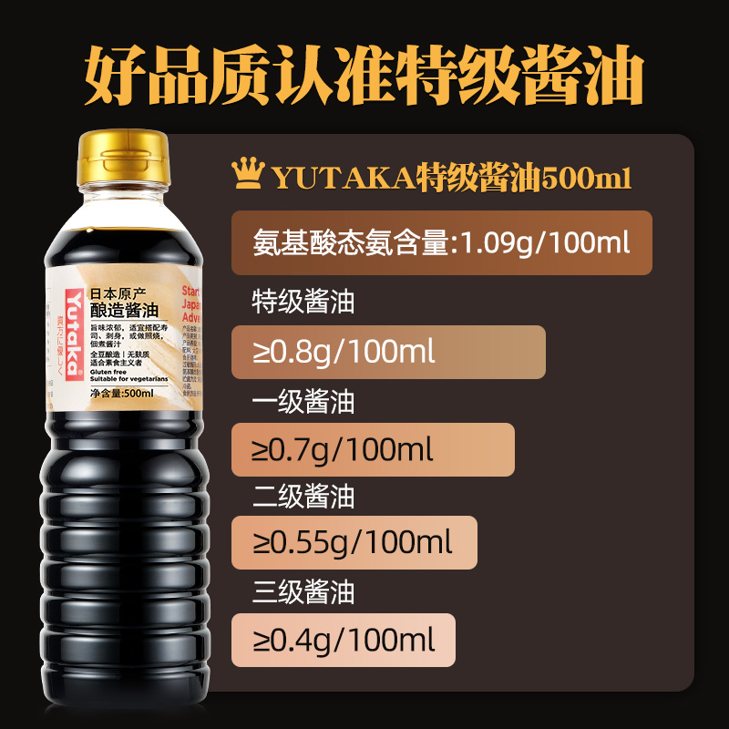 日本原装进口酱油无麸质0添加无碘盐无糖添加鱼生寿司刺身照烧