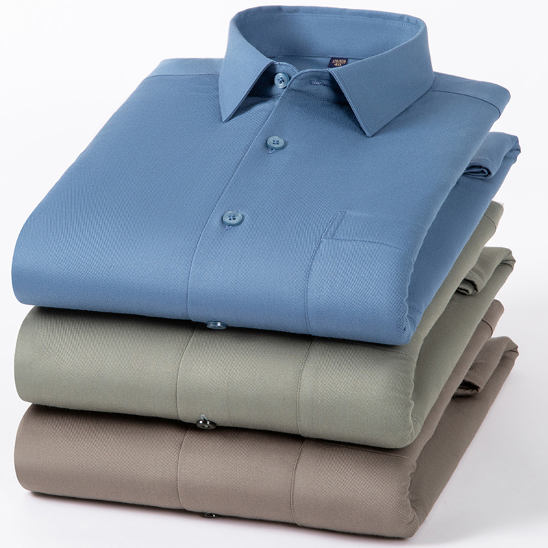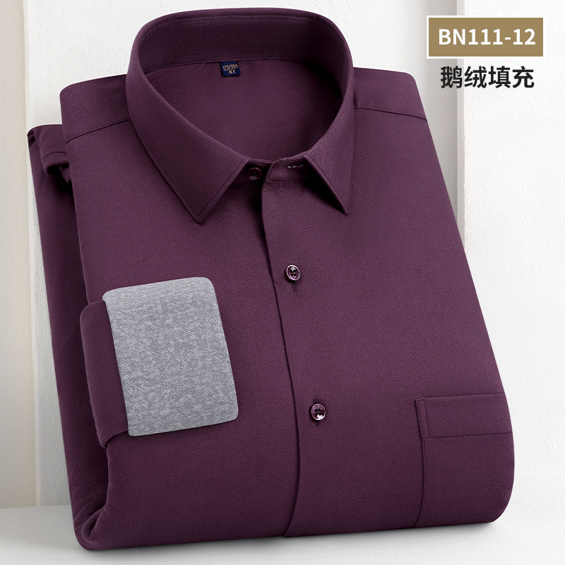 冬季高档鹅绒男士长袖保暖衬衫纯色商务休闲中年加绒加厚保暖衬衫