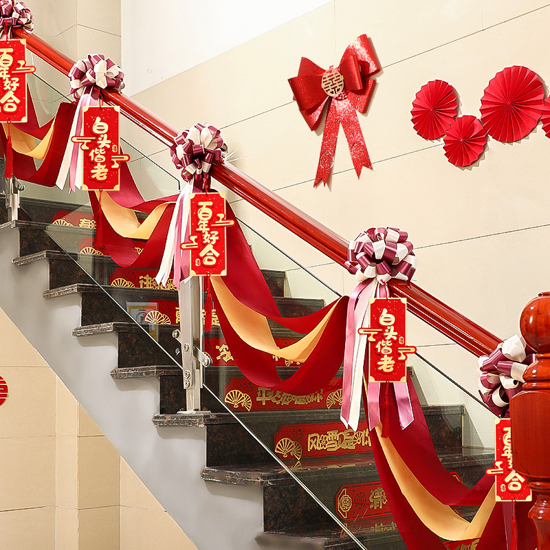 结婚楼梯扶手装饰农村婚礼喜字拉花彩带婚庆用品男方婚房布置套装