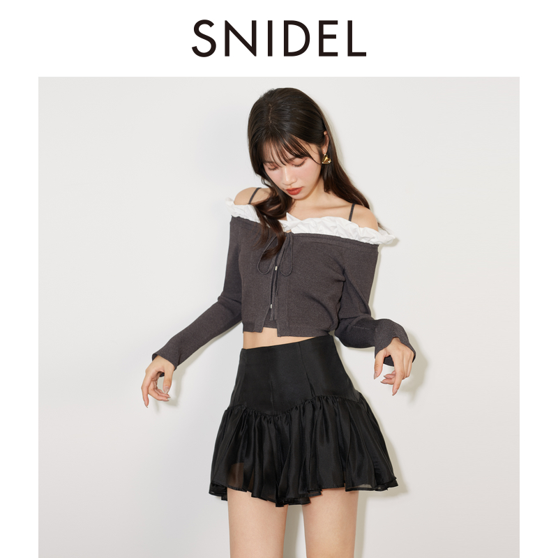 SNIDEL秋冬款一字领荷叶边露肩吊带针织开衫上衣SWNT244179