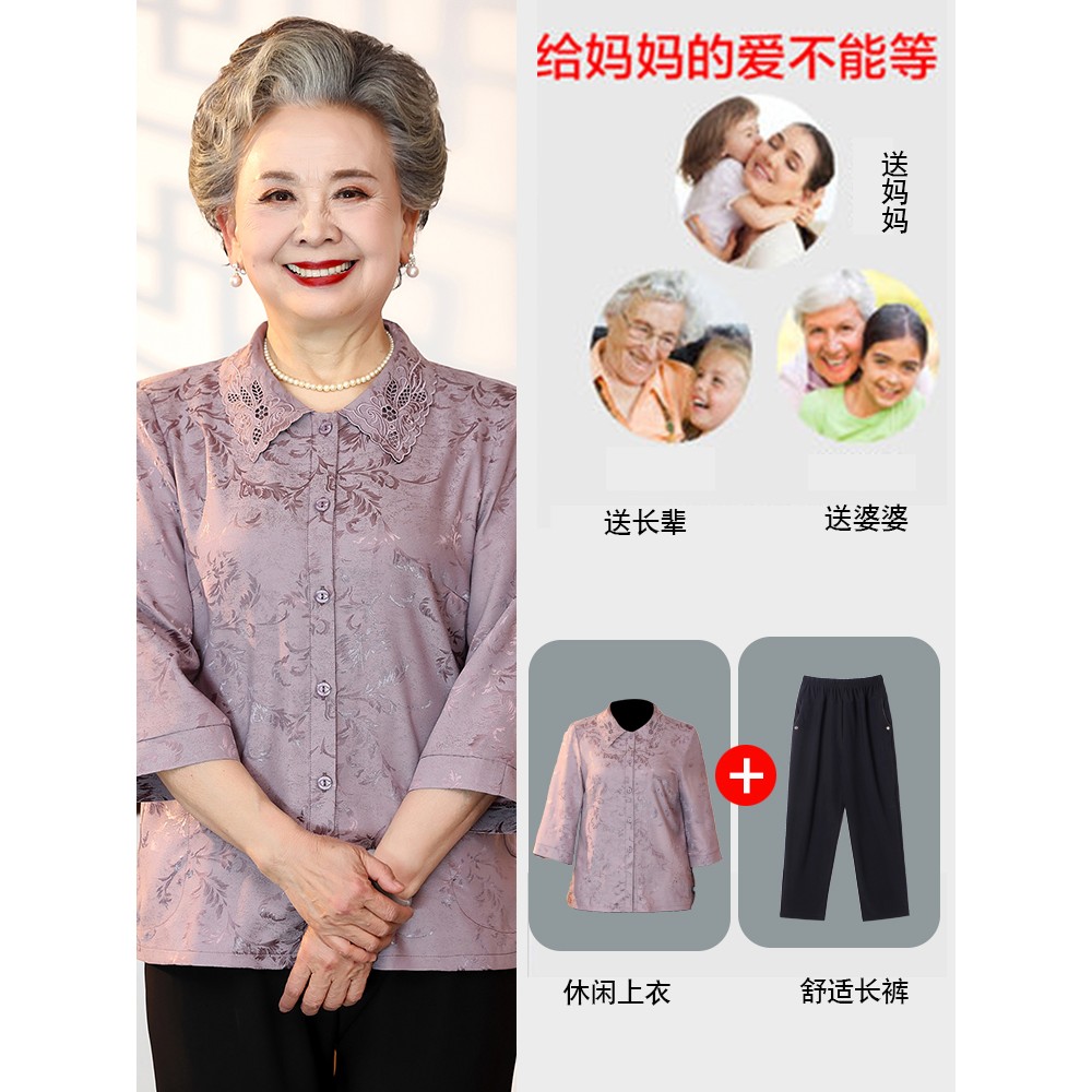 奶奶夏装衬衫洋气时尚套装老年人女夏季上衣妈妈衬衣老人太太衣服