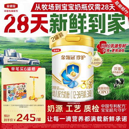【HMO重磅升级】新鲜-伊利金领冠珍护3段1-3岁婴幼儿牛奶粉900g*2