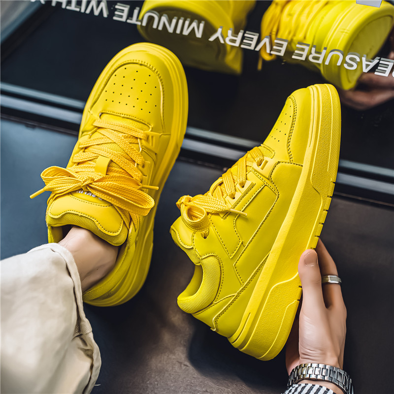 莆田男鞋夏季2025新款黄色百搭休闲板鞋男小众原创透气厚底小白鞋