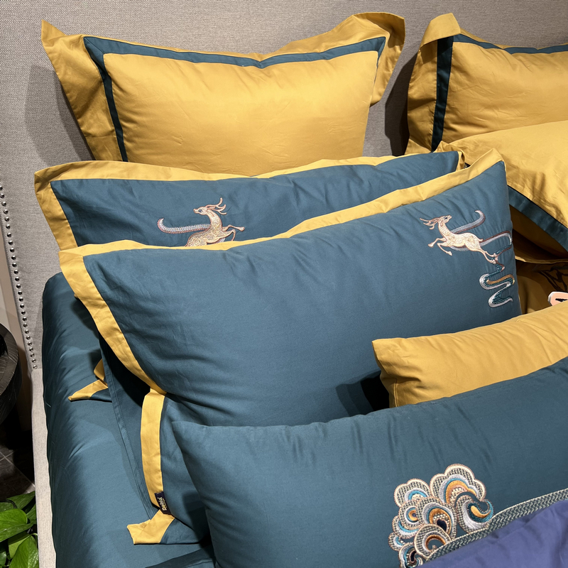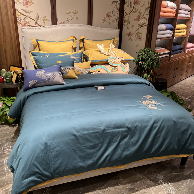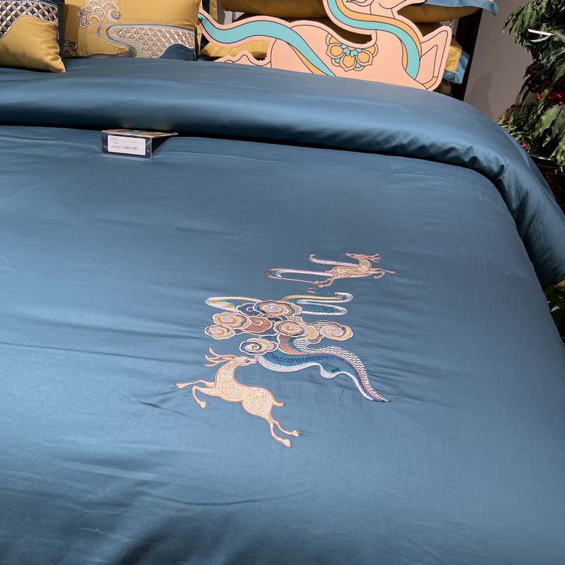 多喜爱新绒棉四件套专柜同款60s长绒棉刺绣纯色新中式床品229*230