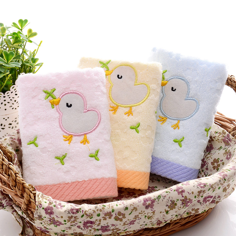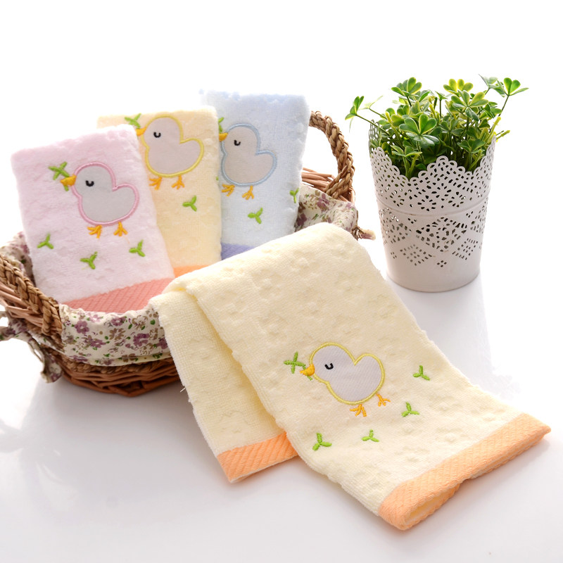 三利儿童毛巾正品纯棉童巾 卡通可爱无捻刺绣小鸡7039 买6送3包邮