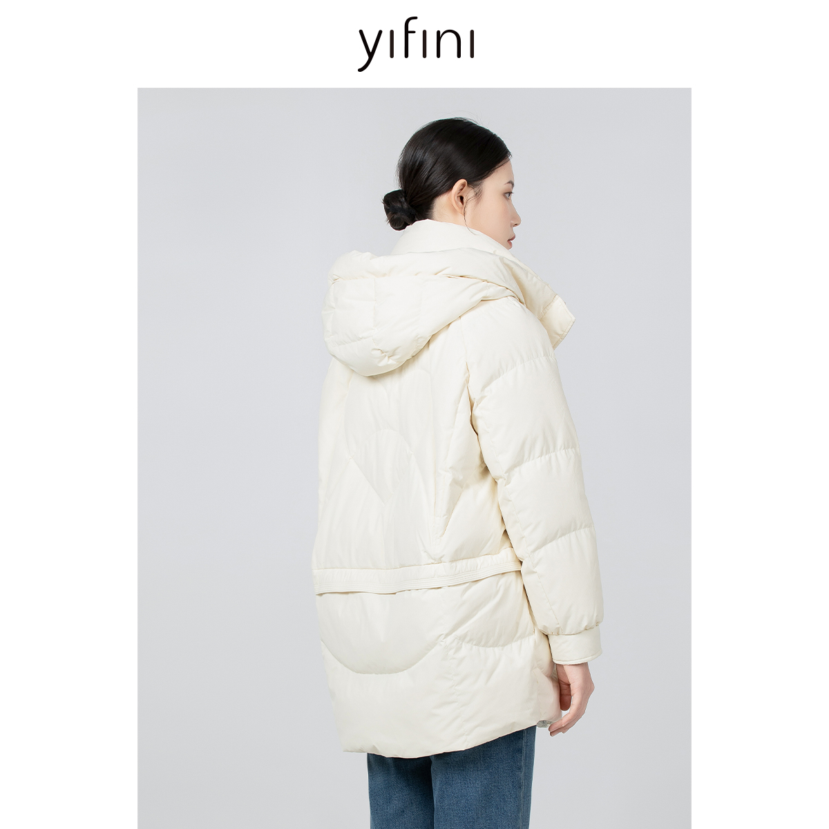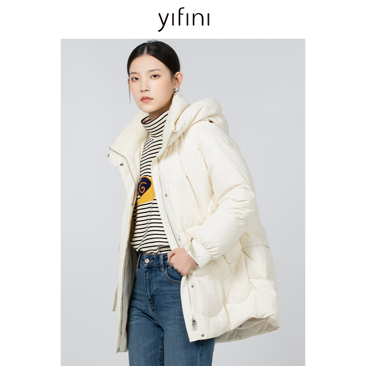 Yifini/易菲中长款连帽加厚保暖白鸭绒羽绒服女冬季新款外套