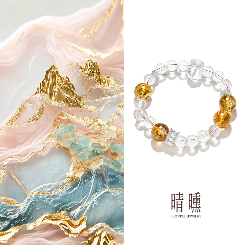 晴曛 水晶手串黄塔晶招财草莓晶红丝绒手链