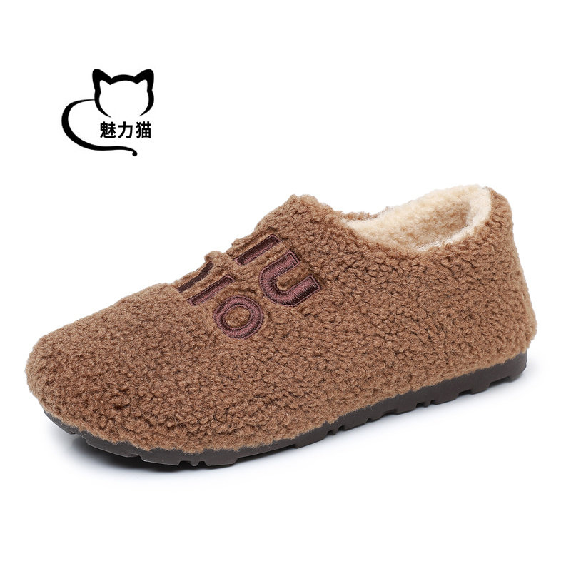 新款秋冬季保暖雪地靴女鞋一脚蹬加绒加厚毛毛鞋防滑休闲豆豆棉鞋