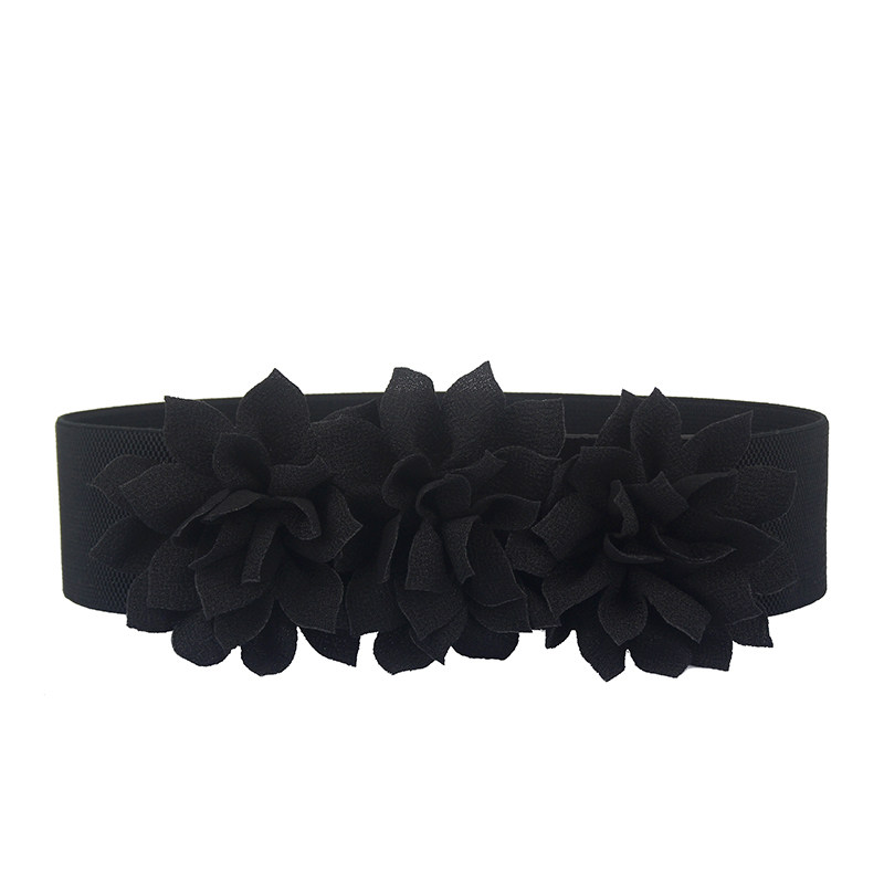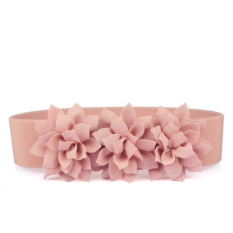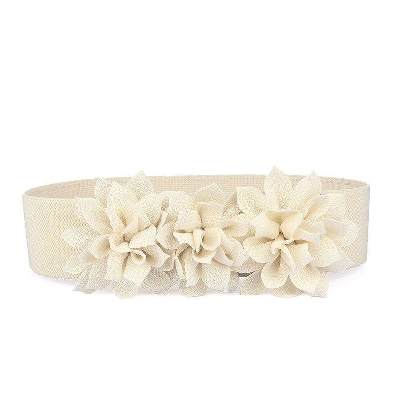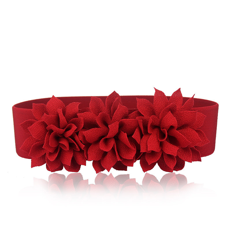 夏季优雅时尚百搭花朵弹力松紧腰带女装饰婚礼服连衣裙子皮带红色