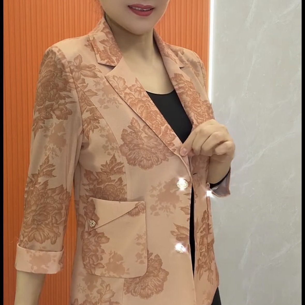 夏季紫色印花西服2025新款西装时尚外套气质洋气百搭修身高档上衣