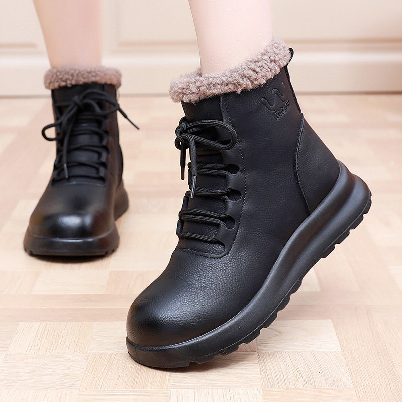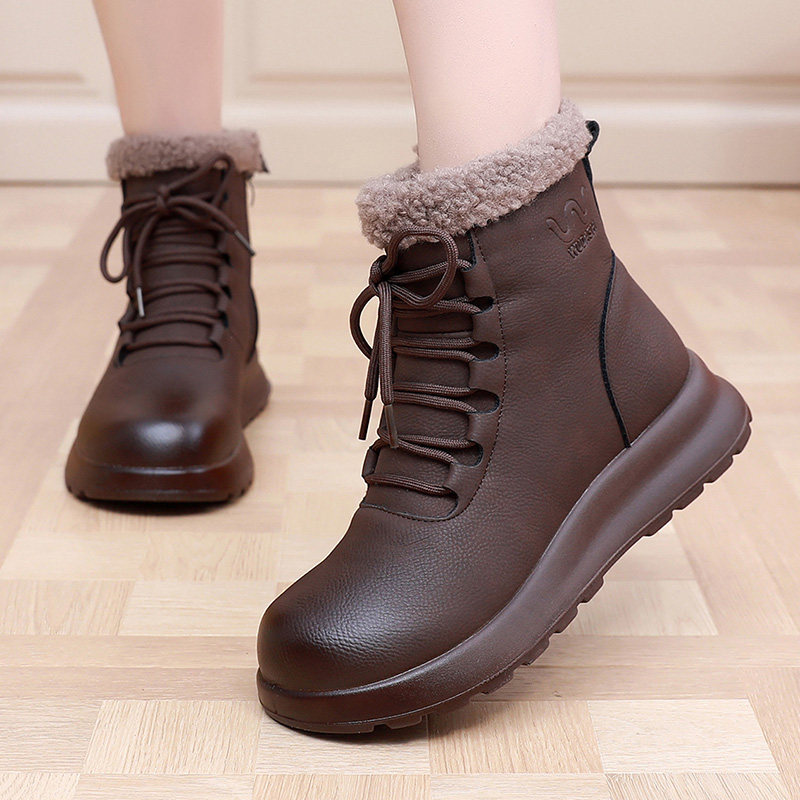 平底防滑系带软底软皮小皮鞋秋冬加绒学生短靴英伦风高帮皮鞋女鞋