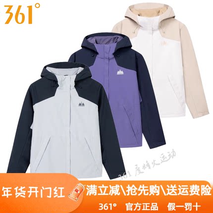 361度运动外套女装2025春季新品防泼水连帽薄绒风衣软壳冲锋衣女