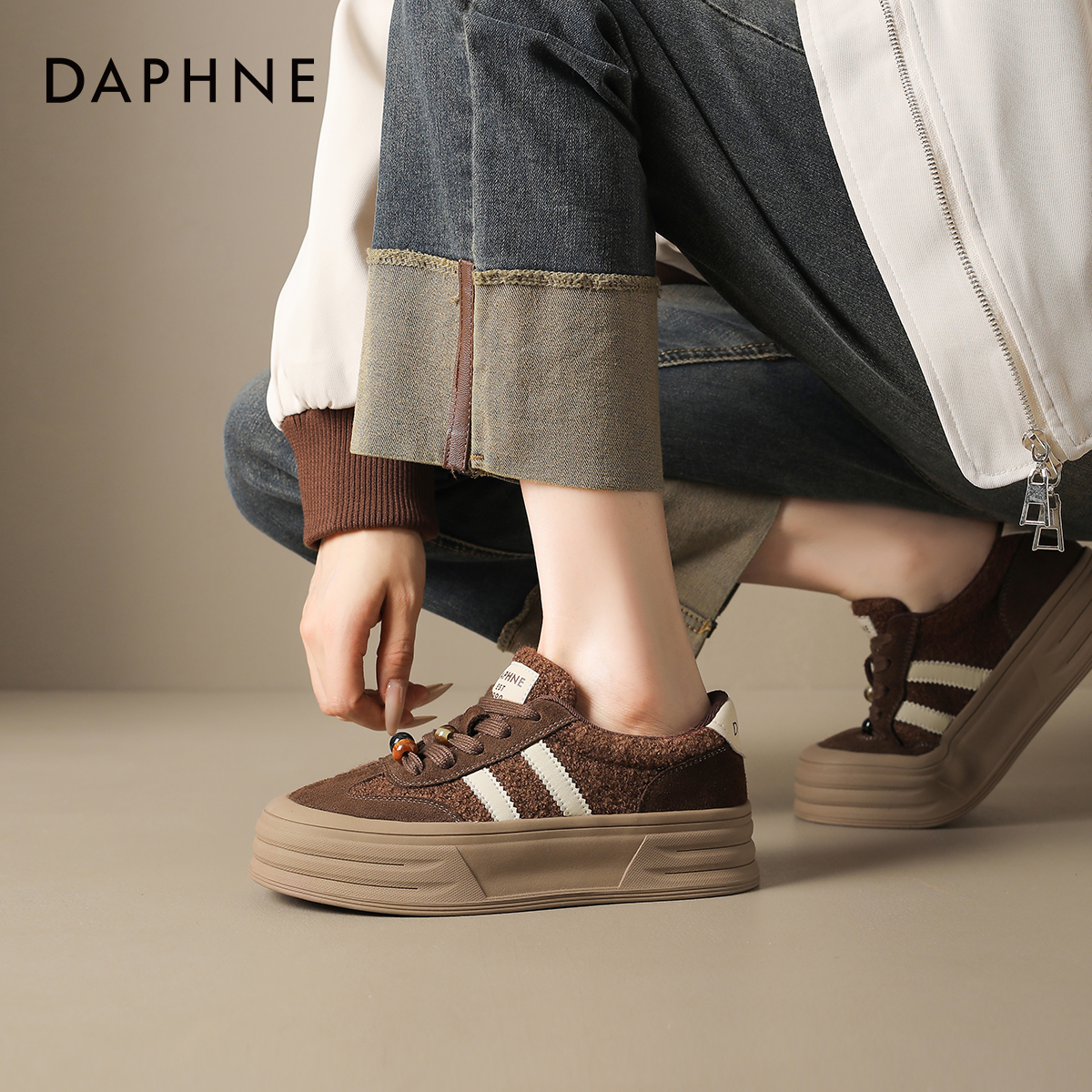 达芙妮厚底德训鞋女款2025新款秋季鞋子棕色休闲板鞋平底增高女鞋