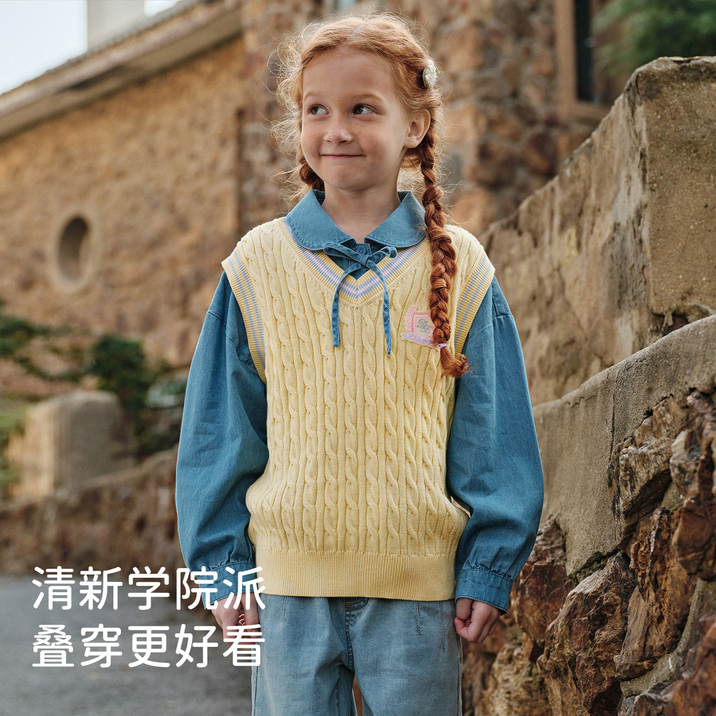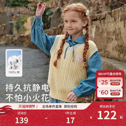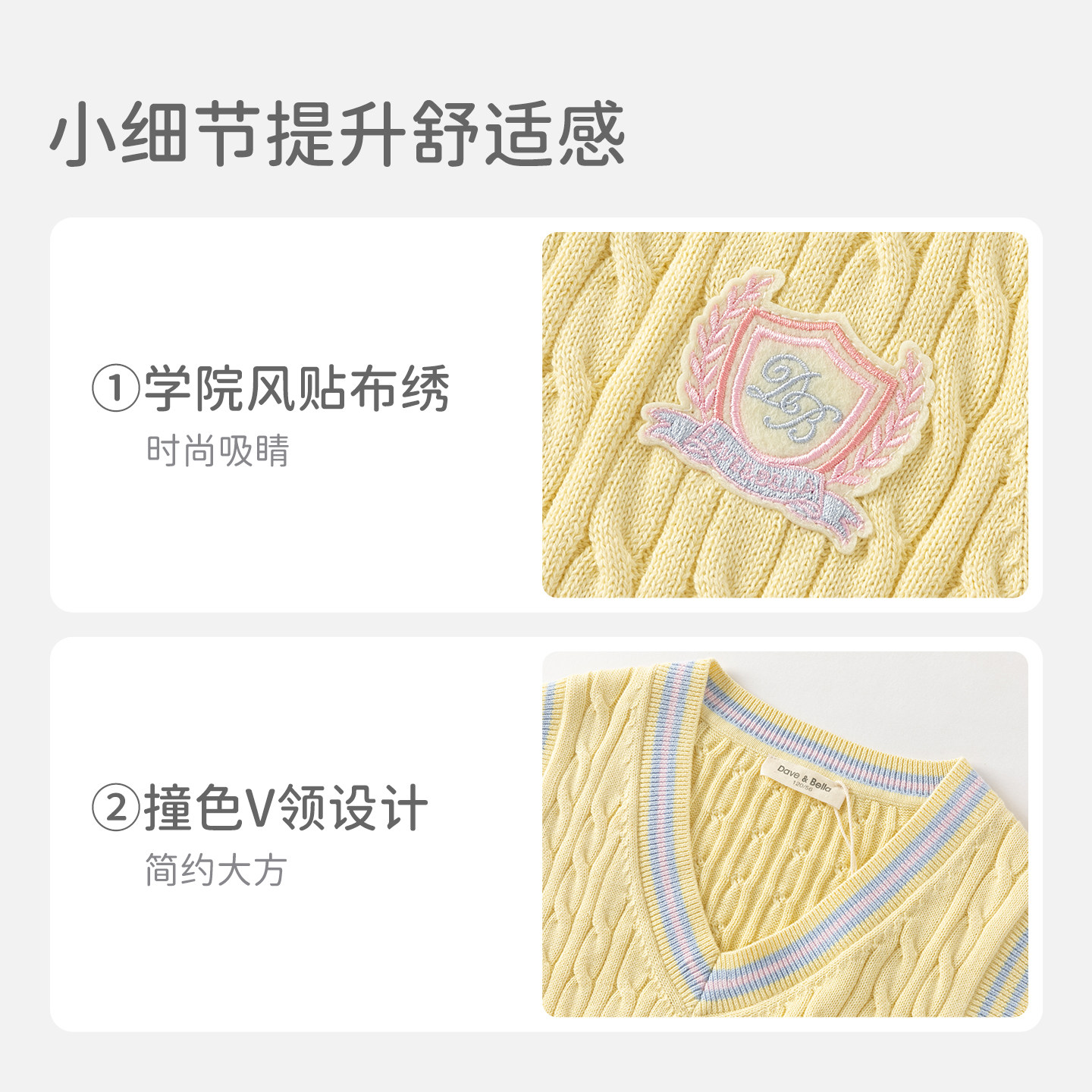 戴维贝拉中大童毛衣背心2026春新款女童学院风纯棉针织马甲抗静电