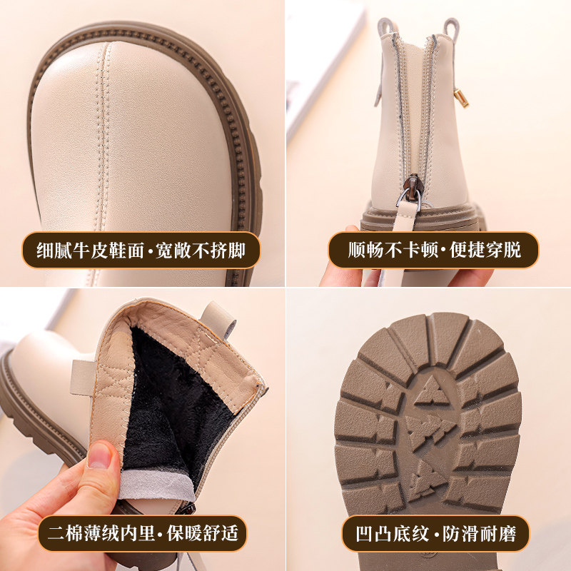 女童靴子儿童短靴2025新款秋冬真皮马丁靴加绒女宝宝冬季二棉鞋子