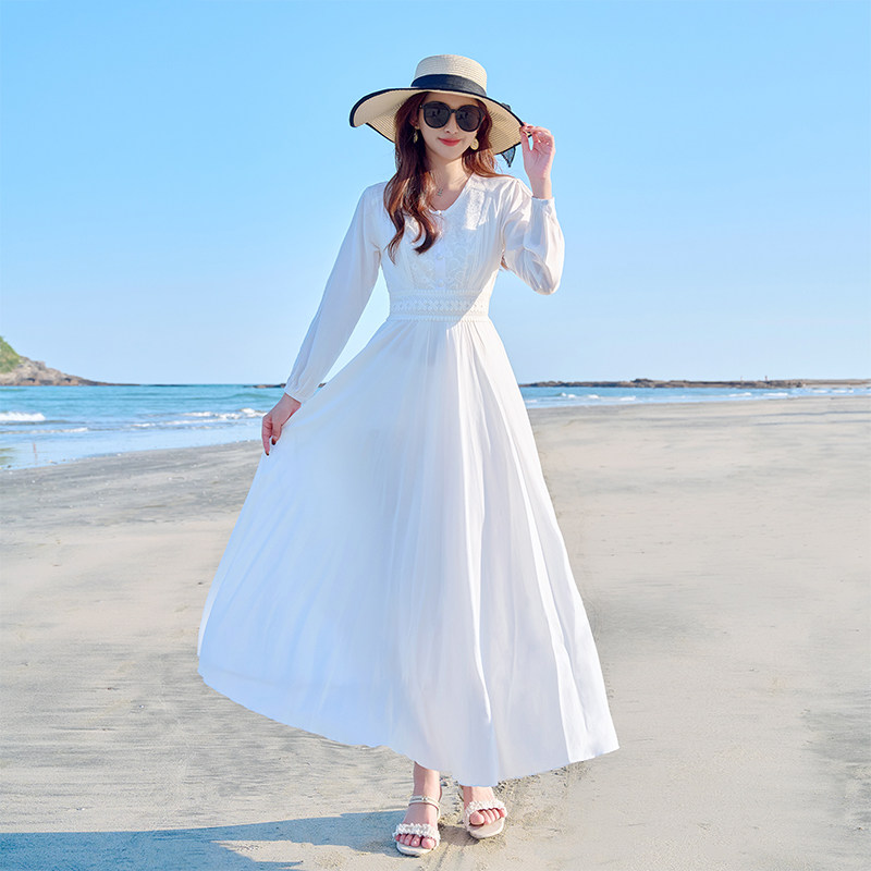 白色连衣裙2025新款法式仙女气质长裙子旅游穿三亚海边渡假沙滩裙