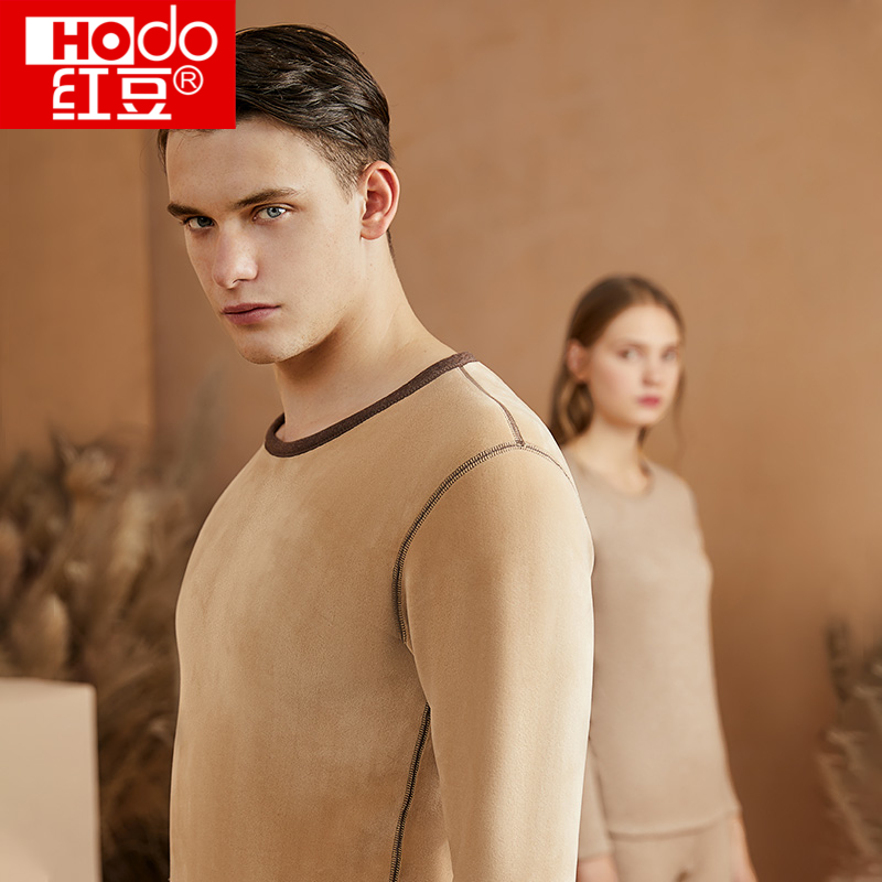 红豆绒保暖内衣加绒加厚男女士色纺冬打底防寒中老年秋衣秋裤套装