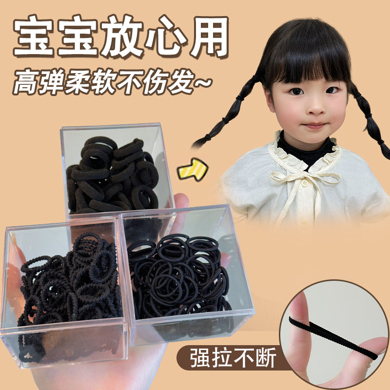 儿童皮筋扎头发宝宝拇指小发圈专用不伤发黑色皮套高弹耐用头绳