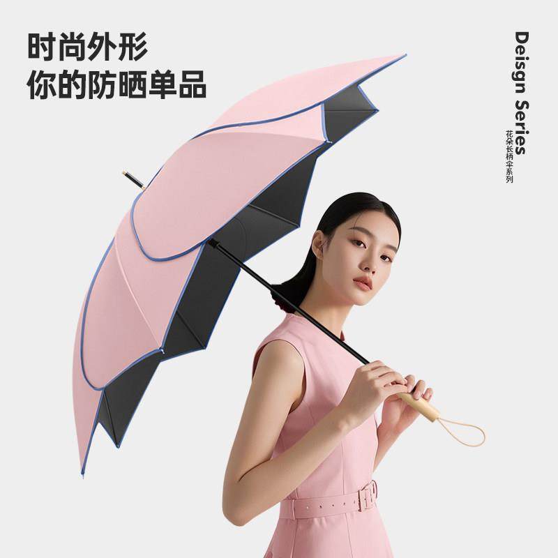 花朵长柄雨伞直柄大号纯色雨伞定制弯柄雨伞定制可印logo广告伞女