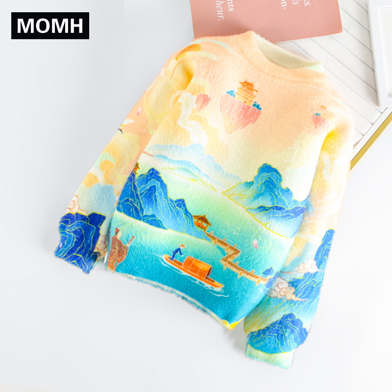 国风男童毛衣水貂绒新年装秋冬款中大童男宝针织衫拜年服加绒加厚