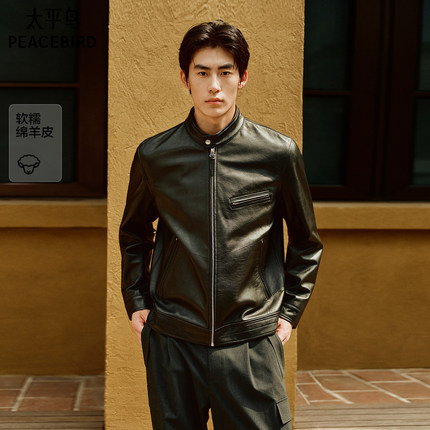 【锋度皮衣】太平鸟男装绵羊皮夹克新款真皮立领外套B1BDF4F06