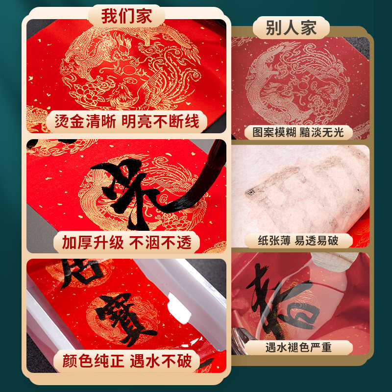 2026年马年新款空白手写万年红春联对联纸自写斗方福字红纸软笔书法专用毛笔字作品红色洒金宣纸五言七言批发