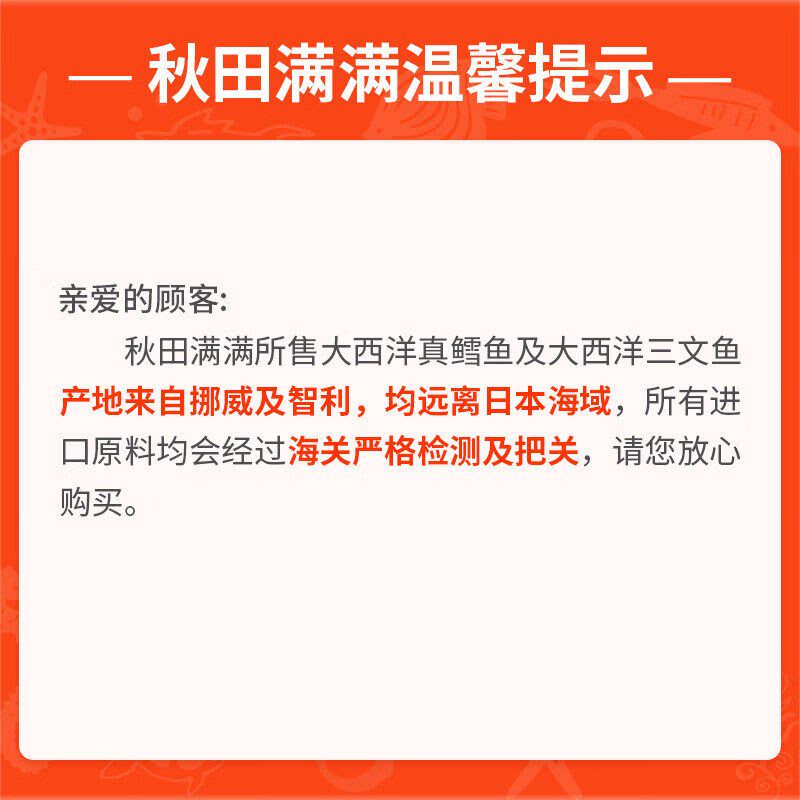 秋田满满新鲜冷冻中段大西洋鳕鱼