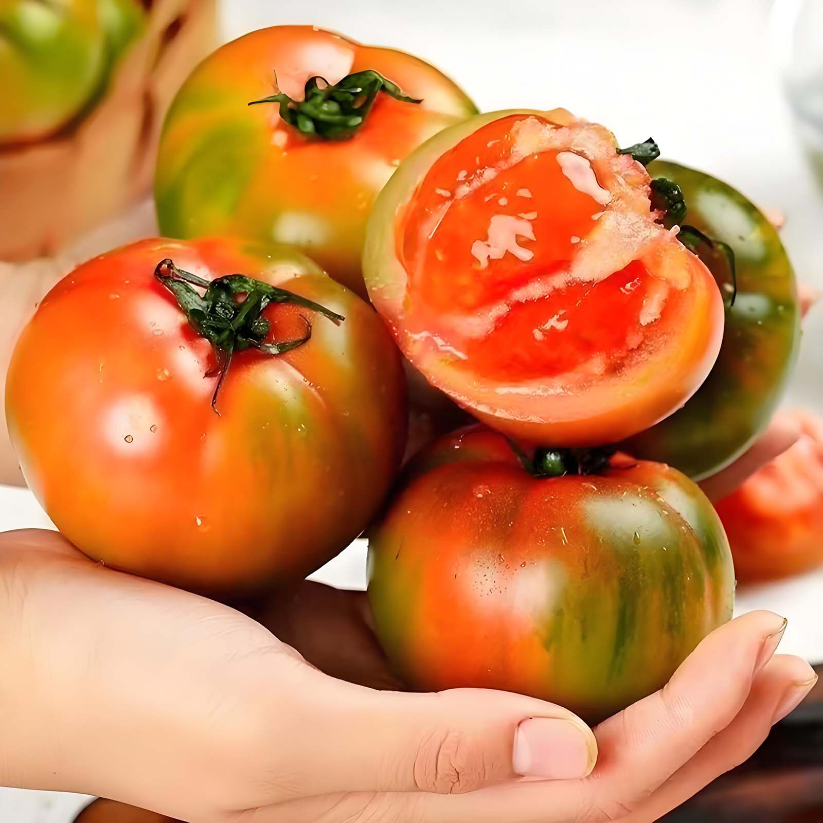 铁皮柿子丹东自然成熟草莓西红柿水果酸甜自家种生吃现摘番茄
