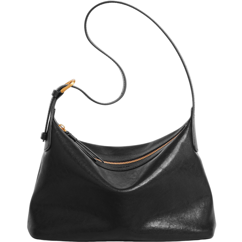 妙迪黑色植鞣头层牛皮hobo包职场通勤真皮腋下包轻软斜挎包包女款
