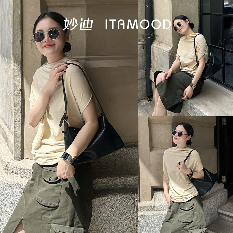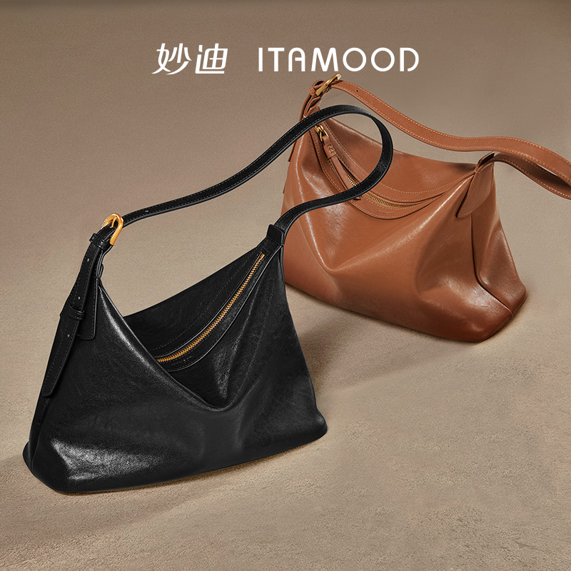 妙迪植鞣头层牛皮hobo单肩腋下包