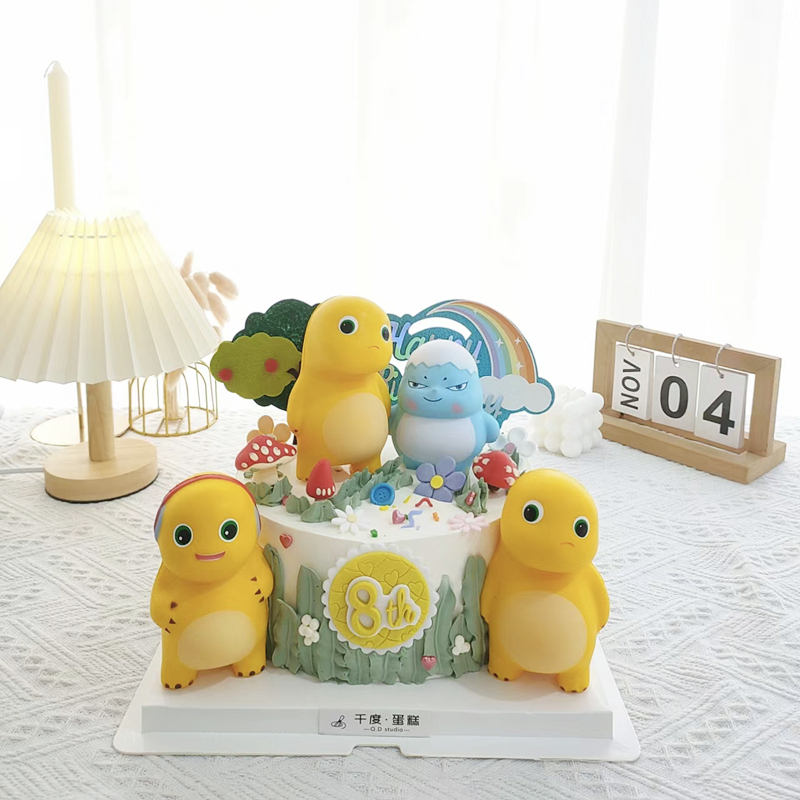 奶龙蛋糕装饰摆件网红森系胖胖可爱小奶龙波点蘑菇花朵甜品台插件