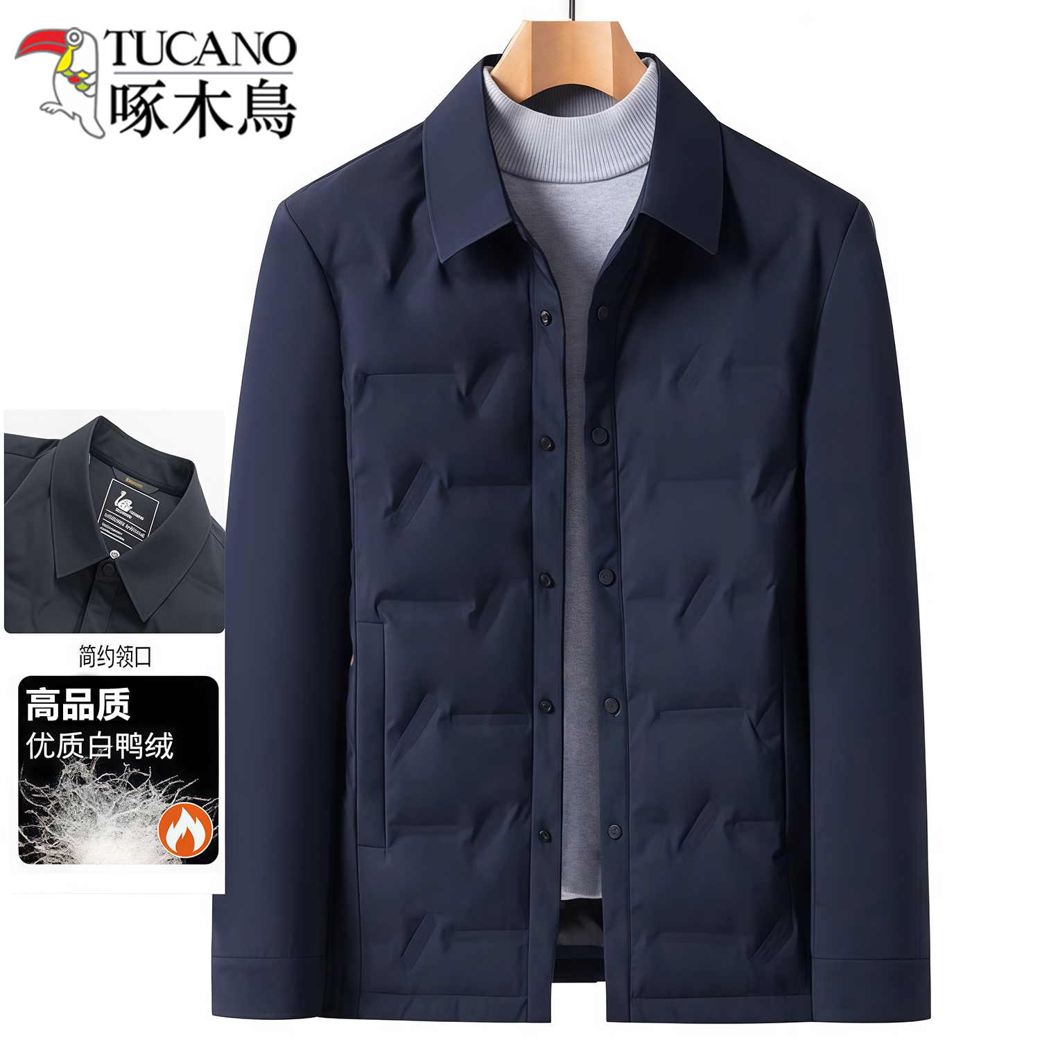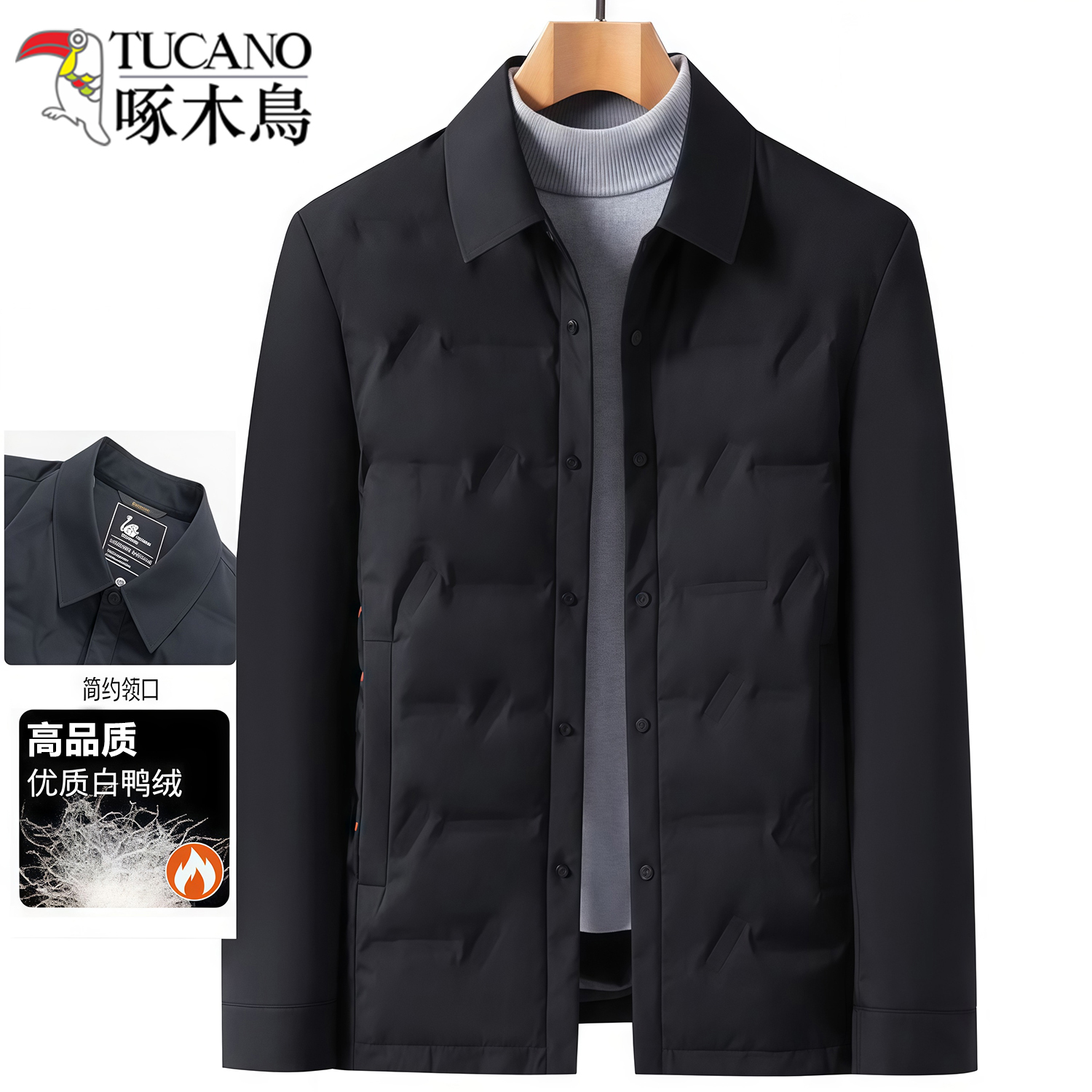 啄木鸟秋冬新款轻薄衬衫翻领羽绒服男商务休闲防寒保暖短款外套