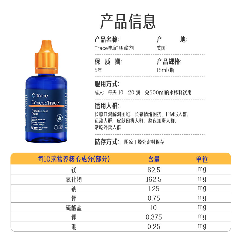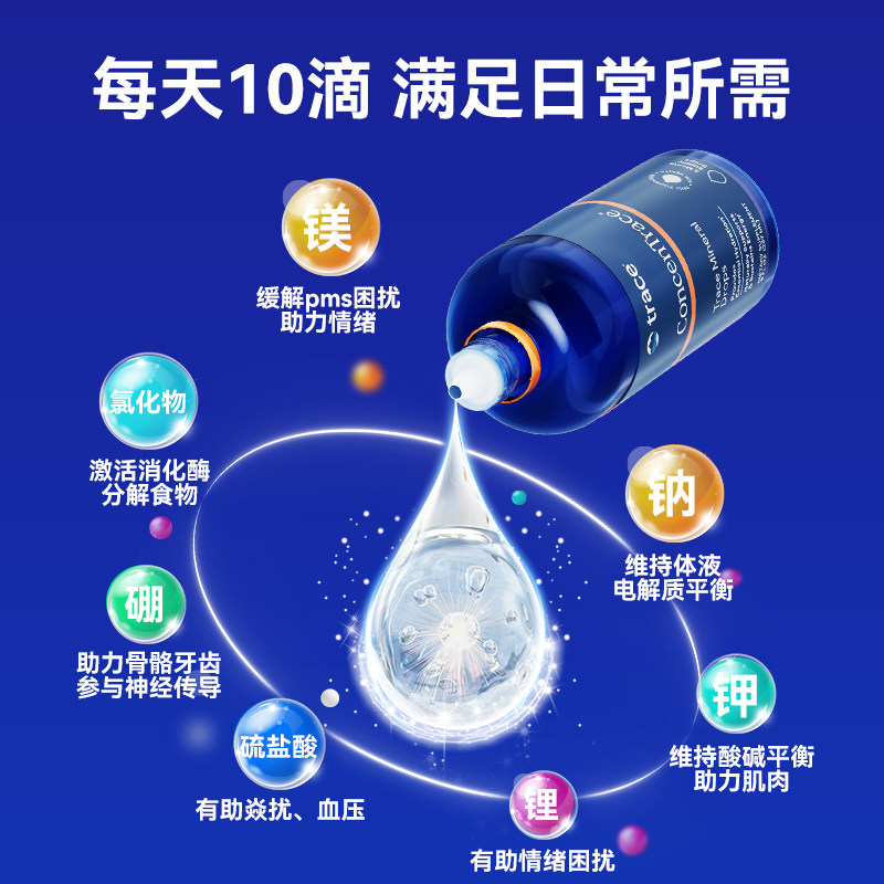 Trace电解质复合矿物质滴剂钙镁锌钾铁补充剂离子镁代谢营养15ml