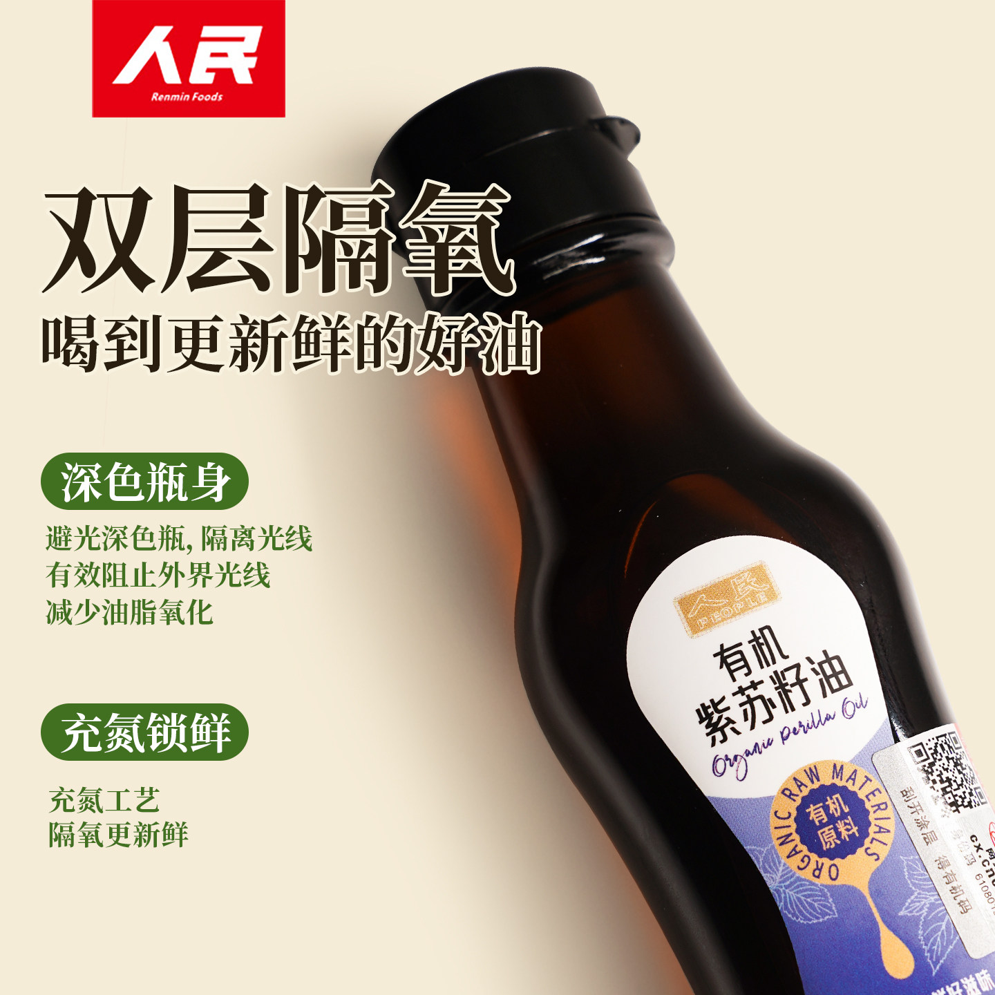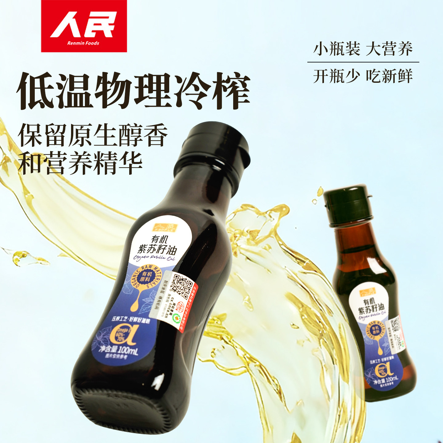 人民食品纯有机紫苏籽油一级冷榨直接喝官方正品初榨100ml食用油
