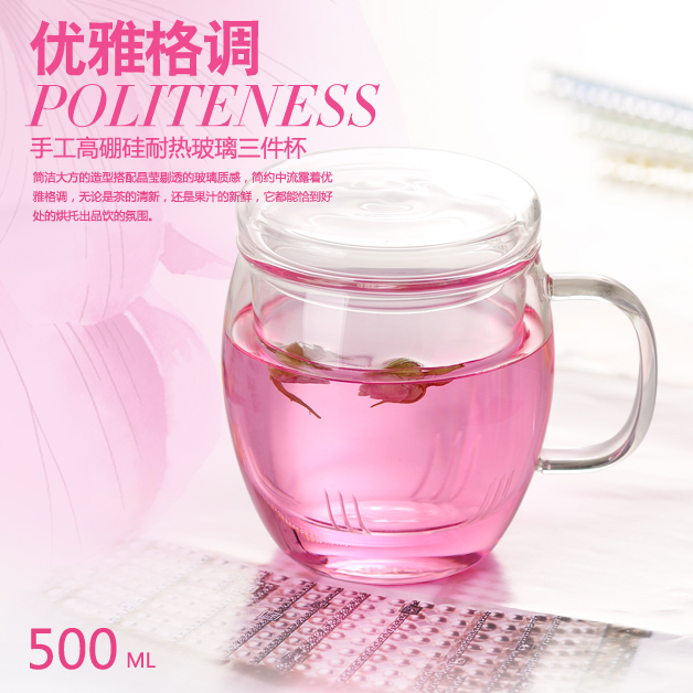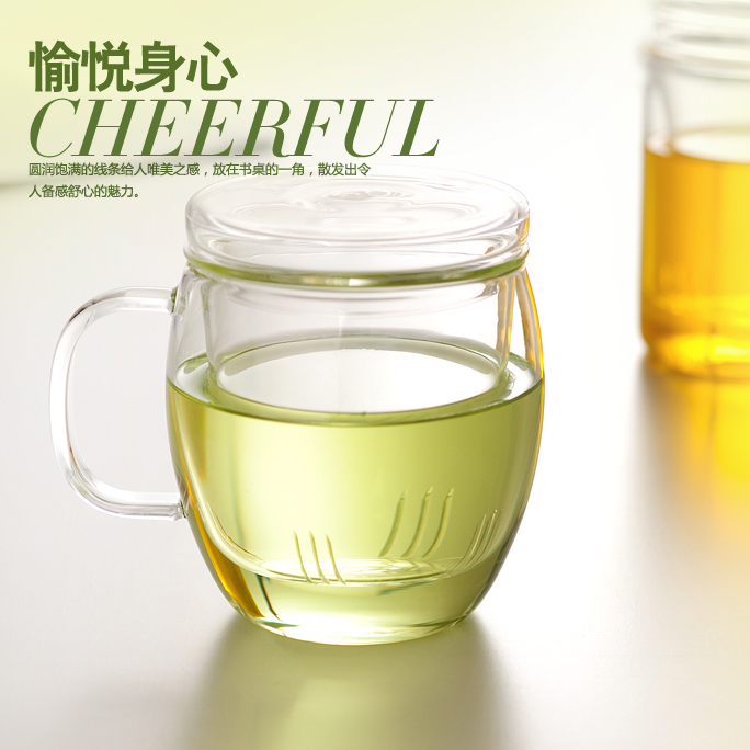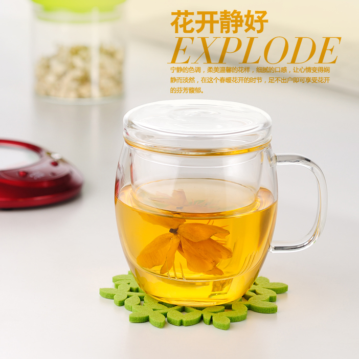 左茗右器带把手玻璃杯耐高温水杯男女士花茶杯茶水分离泡茶杯子