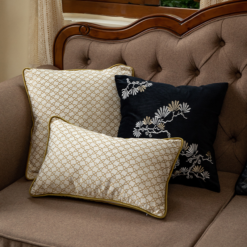 新中式抱枕沙发客厅腰枕美式高级感靠枕现代轻奢靠垫套黑色刺绣套