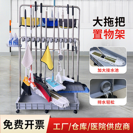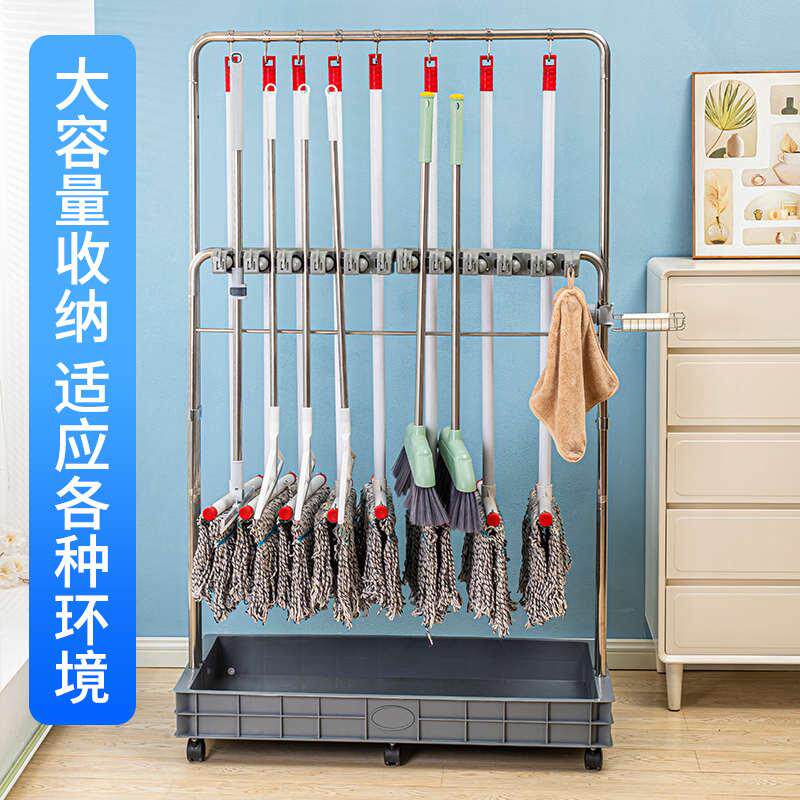 移动落地式拖把架商用学校不锈钢置物架扫把拖把清洁工具收纳规整