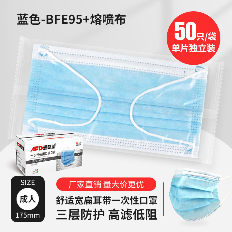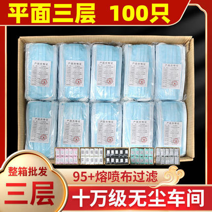 3层无纺布口罩含熔喷成人防尘薄款防护独立包装100只白色粉色黑色