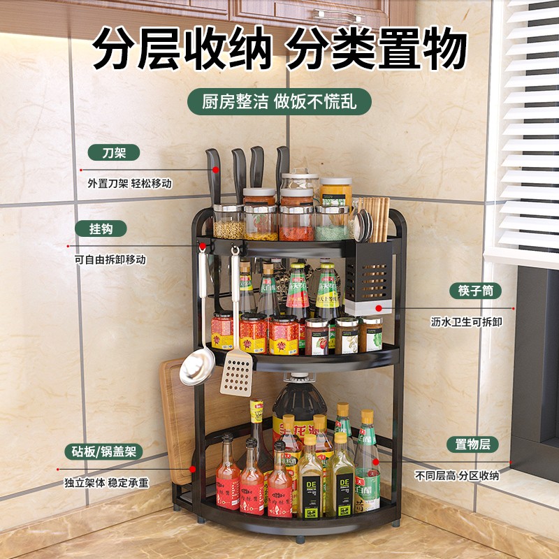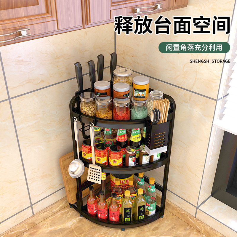 厨房转角置物架不锈钢三角调料架家用台面角落调味品佐料收纳架子