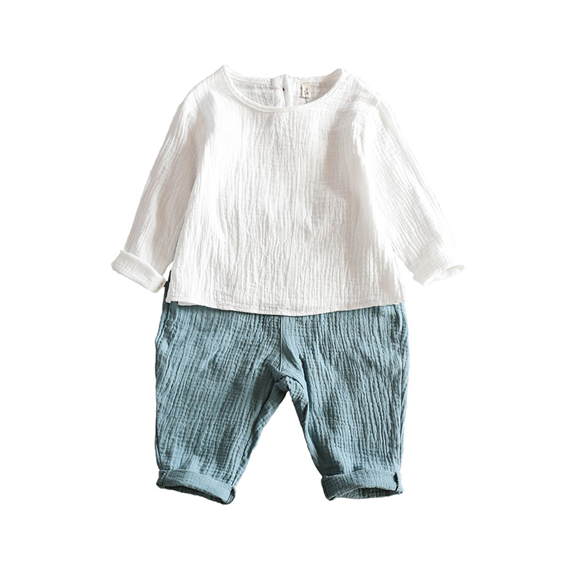 日系纯色手工春夏全棉净色童装上衣长袖T恤男女基本款宝宝打底衫