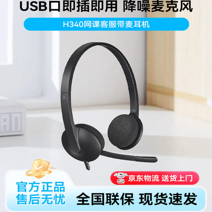 罗技H340USB接口耳机带麦克风可调节笔记本台式电脑耳麦网课会议