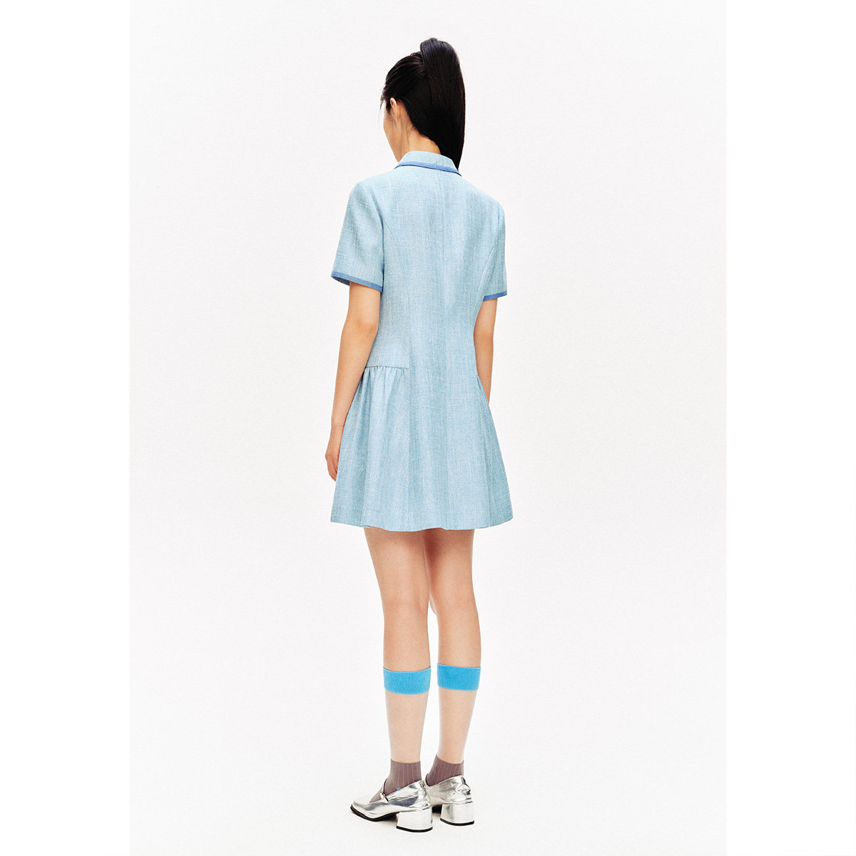 诗篇专选西装领双排扣收腰显瘦学院小香风连衣裙夏款