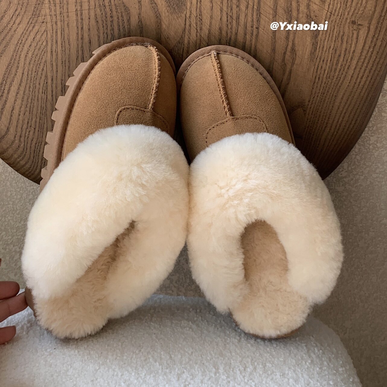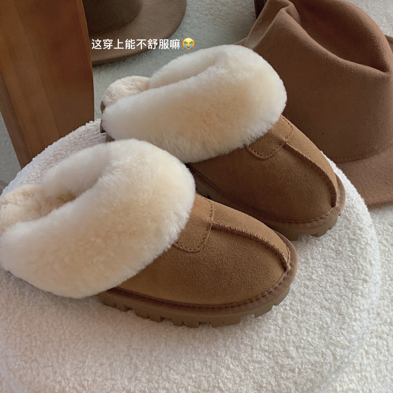 原小白白 皮毛一体真皮羊毛雪地厚底毛毛拖 半包包头毛毛拖鞋外穿