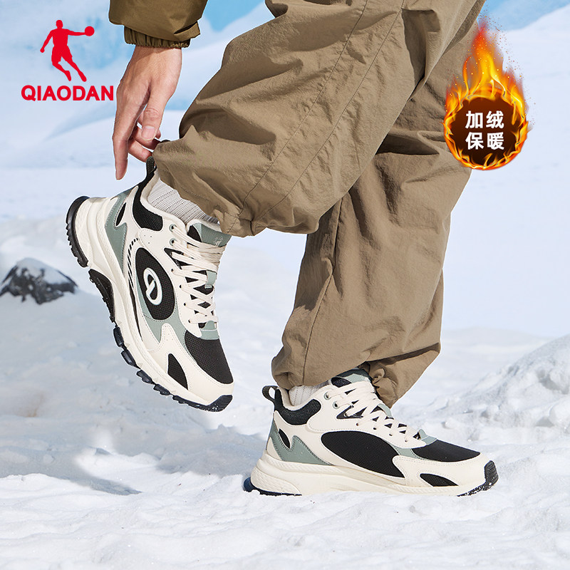 乔丹棉鞋男加绒保暖高帮休闲鞋冬季2025新款皮面运动鞋防滑户外鞋