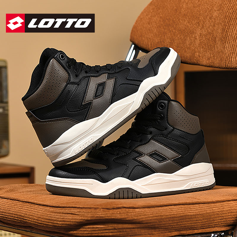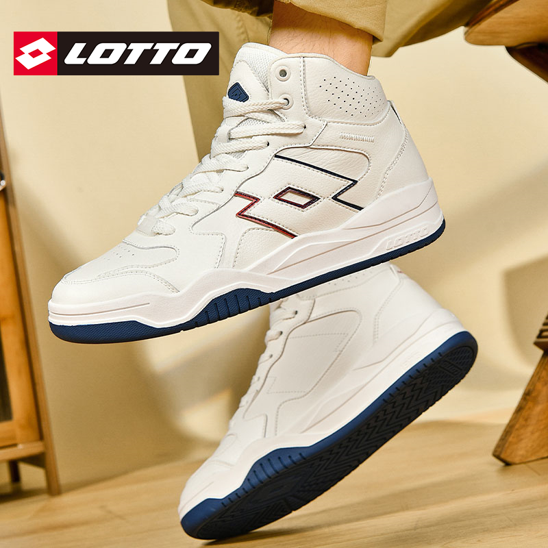 LOTTO乐途男白色厚底高帮板鞋2025秋冬季新款复古皮面休闲运动鞋
