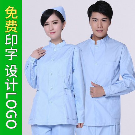 男女医生小褂蓝立领口腔分体套装长袖按摩足疗养老院护工工作服秋